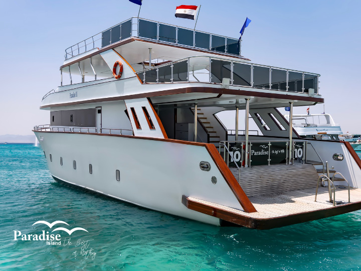 The morning trip begins with collection from your Hurghada hotel between 8:00 and 9:00 am. The yacht departs at 9:30 am for a scenic 1.5-hour cruise, making an extra stop at one of the Red Sea’s finest snorkelling sites before reaching the island. Once on Paradise Island, enjoy free time to unwind, take a dip, or watch a lively Tanoura dance performance.